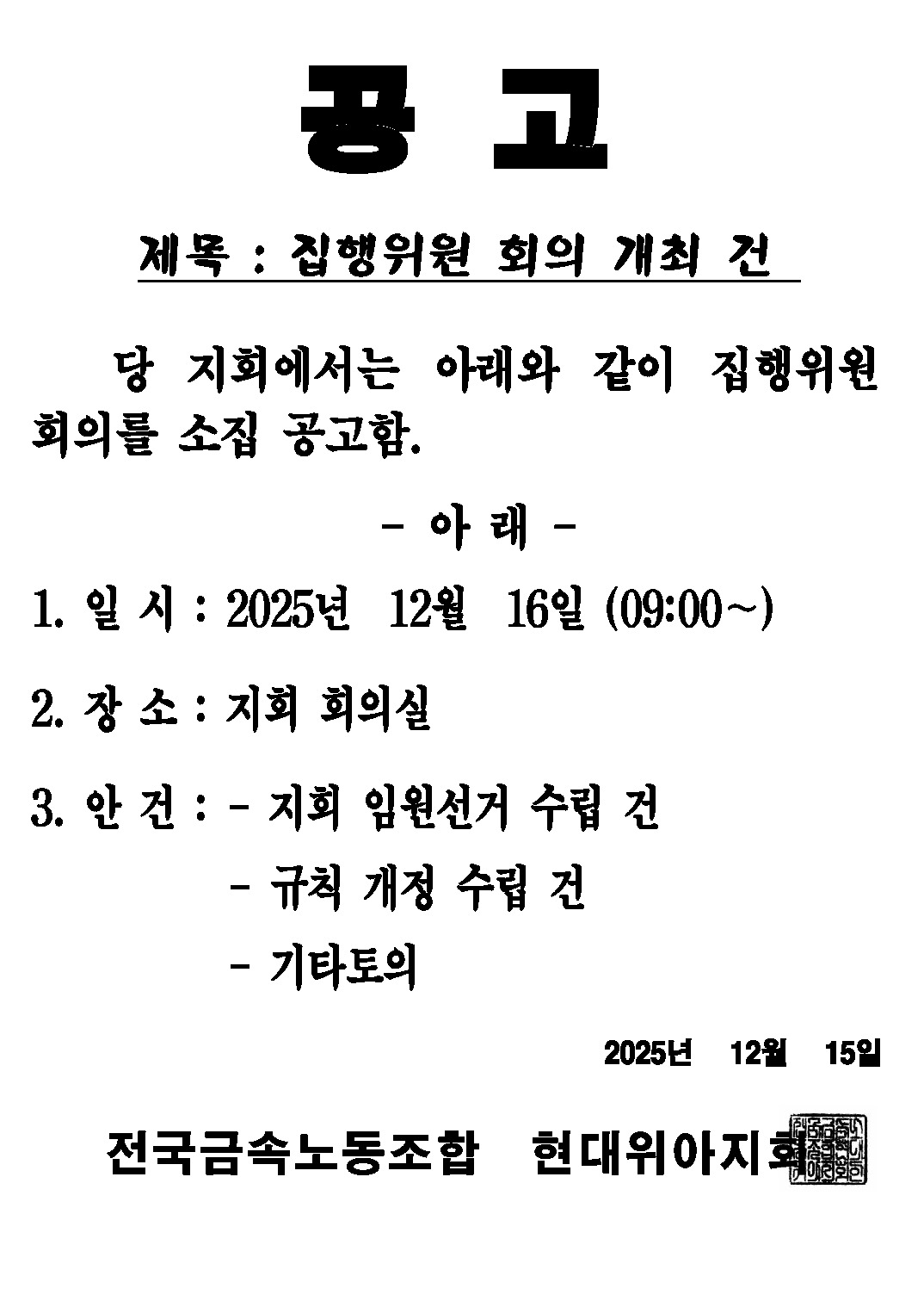| 1040 | 공고) 집행위원 회의 개최 건 | 2025-12-15 | 12 | |