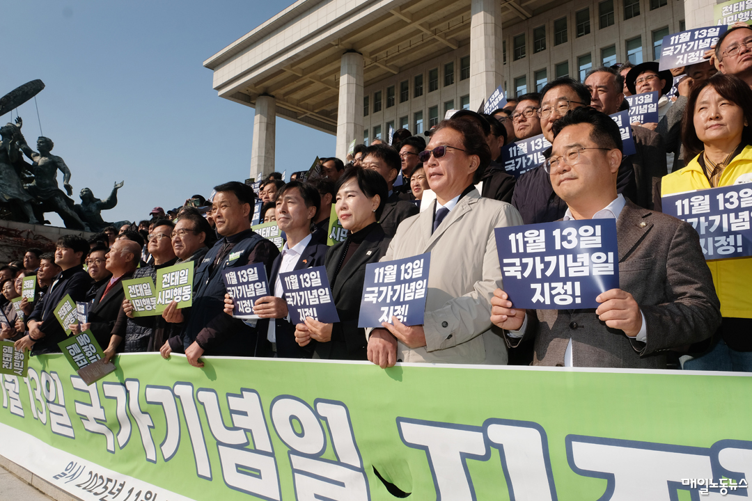 박승흡 전태일재단 이사장은 “11월13일을 전태일과 모든 일하는 사람의 날로 지정하자는 우리의 요구는 시대적 요청”이라며 “국가기념일이 된다면 아이들은 전태일을 배우고 시민은 노동의 의미를 되새기며, 사회는 일하는 사람을 존중하는 포용 국가로 우뚝 설 것”이라고 강조했다.