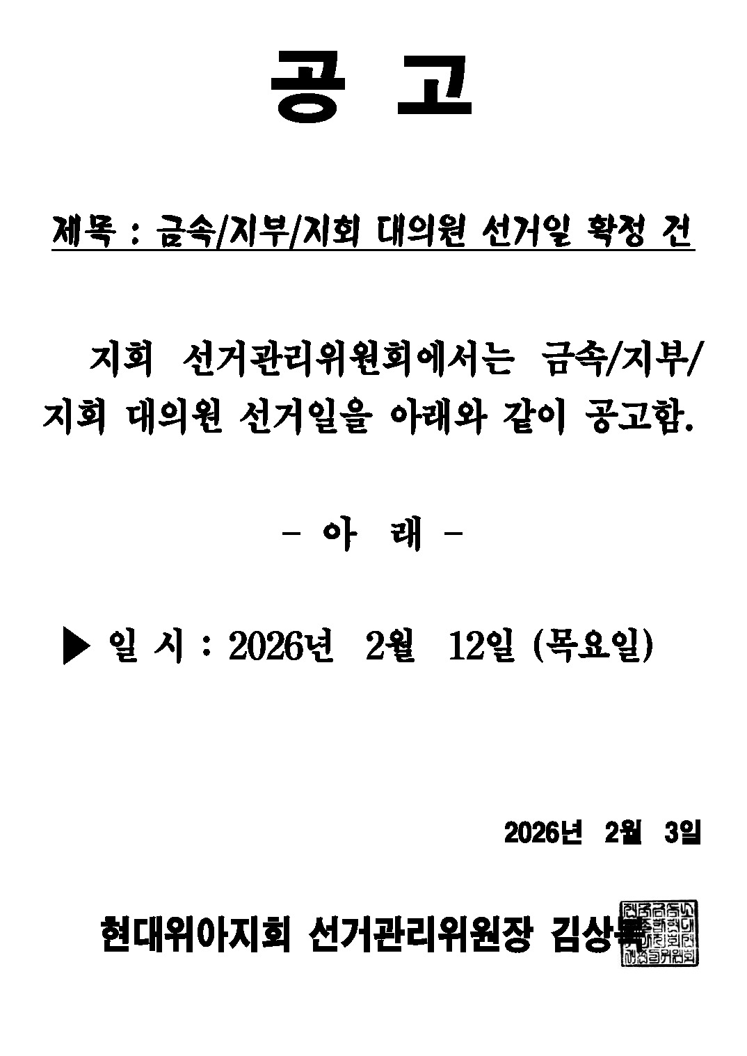 선관위공고) 26'금속,지부,지회대의원 선거일.. |