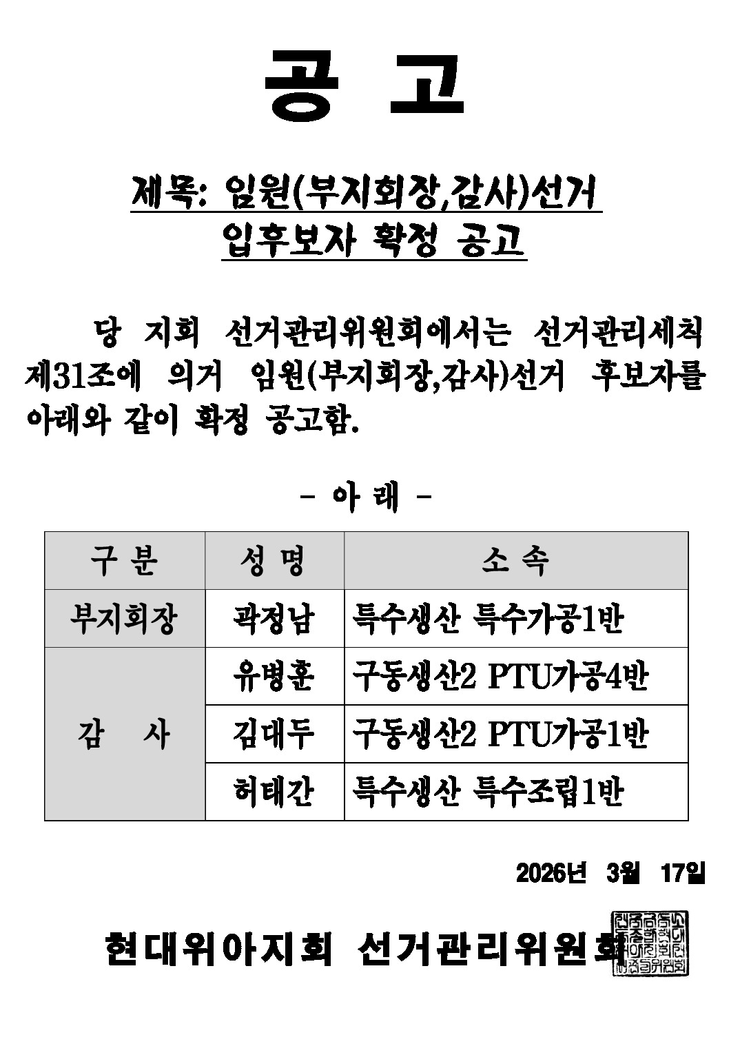 | 1064 | 선관위공고) 26'금속,지부,지회대의원 당선인 | 2026-02-13 | 45 |